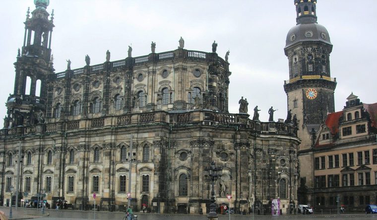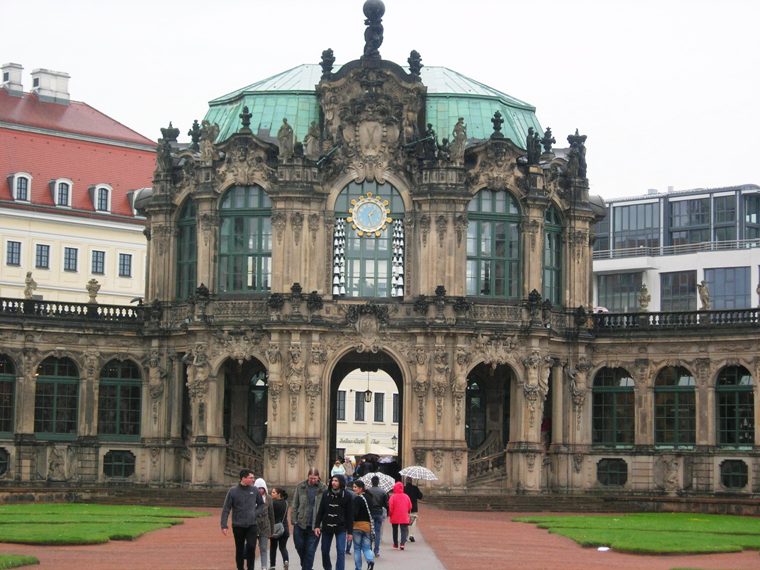 1. Stopp: Auf dem Theaterplatz, der schönsten Platzanlage Dresdens, umrahmt von der Hofkirche und dem Schloss. Wir steigen aus und lauschen weiterhin den Erklärungen der Stadtführerin: Semperoper, italienisches Dörfchen, Schinkelwache, Spaziergang durch den Zwinger, am Graben entlang in der Ostra Allee, vorbei am Zwingerteich und wieder in den Bus.