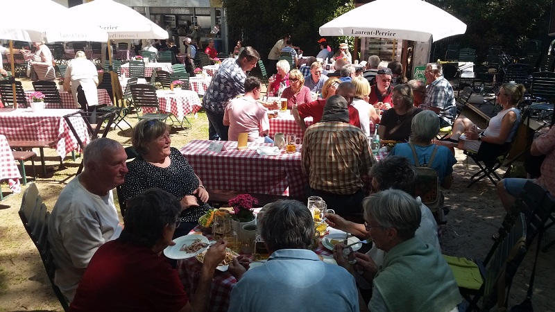 Abendessen und gemütliches Beisammensein, bei jeder Wetterlage wird gegrillt (Thüringer Rostbratwürste auf Spezialgrill aus Altenburg, aber auch Merguez-Würste aus Straßburg), auch die Getränke (Bier, Sekt und alkohalfreie Sachen) werden von uns mitgebracht. |