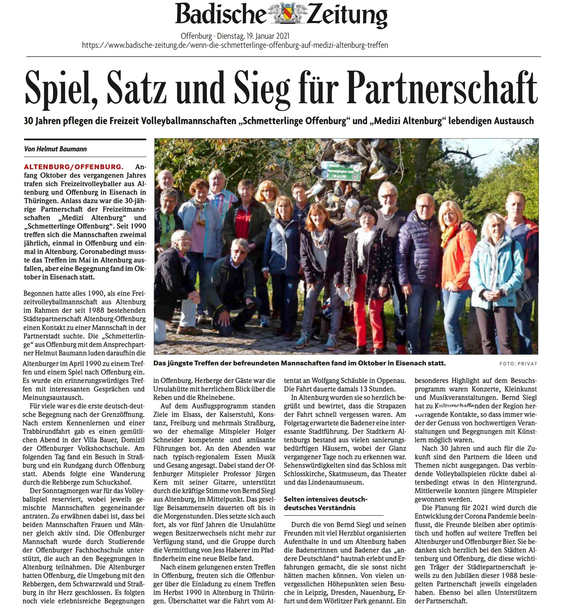Fahrt der Offenburger und Altenburger Volleyballer zum Partnerstadt-Treffen in Eisenach in Thüringen